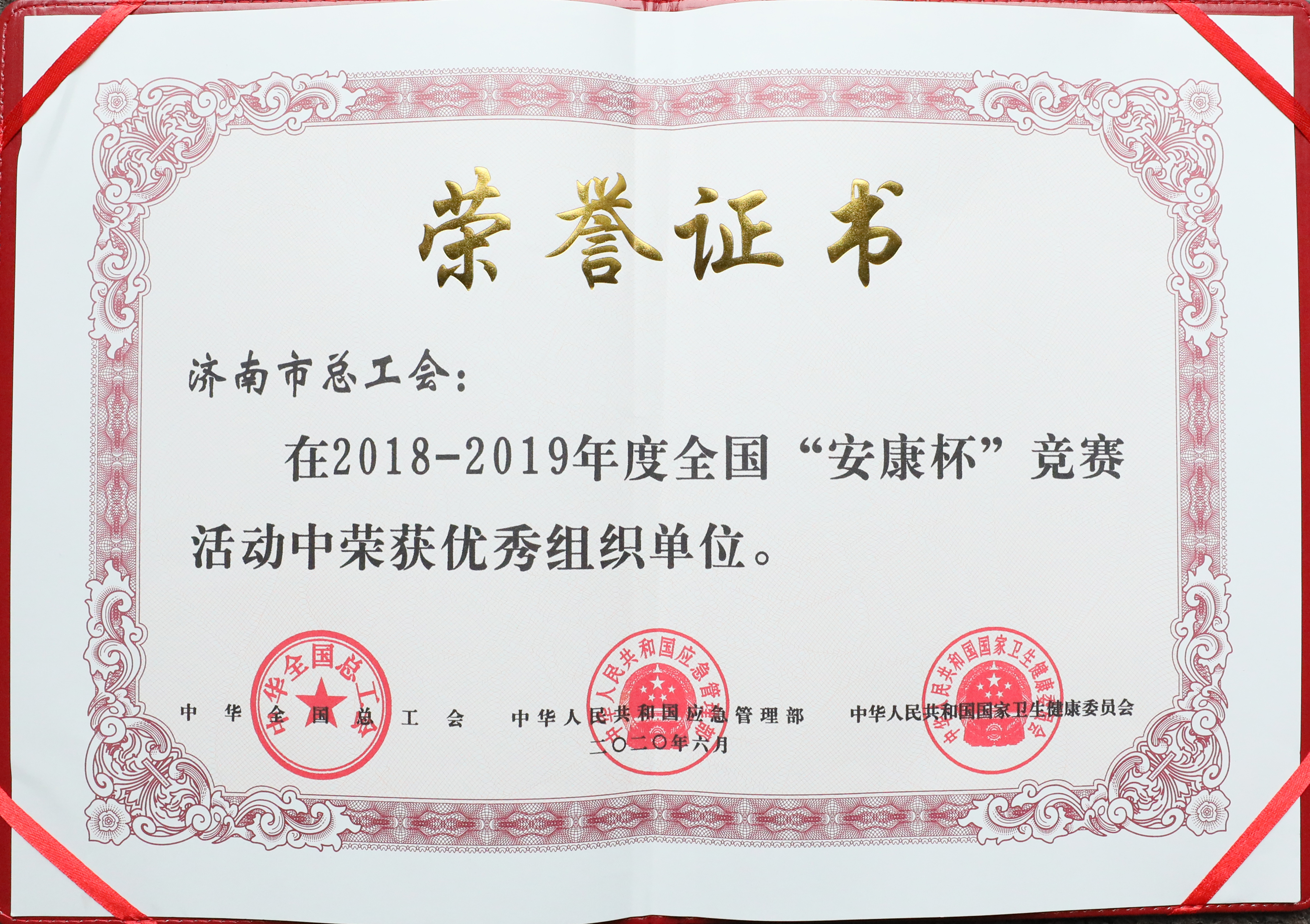 近日,全国“安康杯”竞赛评比结果公布,济南市总工会榜上有名,喜获2018-2019年度全国“安康杯”竞赛优秀组织单位荣誉称号。