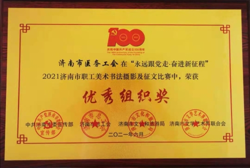 此次活动由中共济南市委宣传部、济南市总工会、济南市文化和旅游局、济南市文学艺术界联合会联合举办。其中,市卫生健康委选送的征文类作品《坚定信念跟党走》获一等奖,美术类作品《背影》获二等奖,摄影类作品《粉色隔离衣的故事》获三等奖,医务工会获优秀组织奖。
