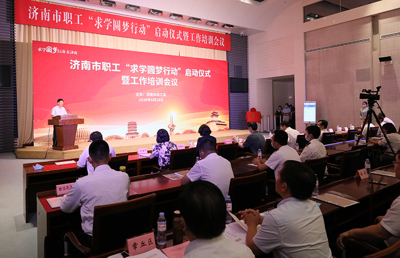 6月28日上午,济南市职工“求学圆梦行动”启动仪式暨工作培训会议在龙奥大厦召开。山东省总工会副主席魏勇,济南市委常委、市总工会主席雷天太出席并讲话。与会领导为济南市“求学圆梦”职工教育运营中心揭牌,正式启动济南市职工“求学圆梦行动”。
