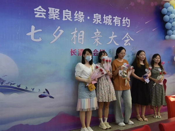 为帮助单身青年职工解决婚恋问题,8月4日,七夕佳节当天,由省、市总工会等单位主办,长清区总工会、区委区直机关工委、区妇联、团区委、区退役军人事务局、区民政局、区工商联等承办的“会聚良缘·泉城有约”七夕相亲大会长清分会在区职工服务中心举办。线上线下报名达到260余人,50余名来自区直机关、企事业单位以及驻济部队的单身青年职工现场参加联谊互动。活动在优美的音乐声中拉开帷幕,彩色的气球、精美的甜点、新鲜的水果、漂亮的鲜花,营造了温馨浪漫的节日氛围。