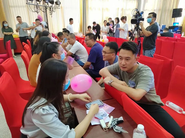 活动现场,主持人积极与青年职工互动,通过自我介绍、现场表白等轻松有趣的游戏,拉近青年职工之间的距离,用心为他们创造相知、相识的条件,祝福他们在这场青春聚会与浪漫邂逅的缘分里收获爱情。