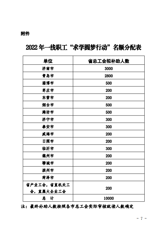 (一)省总工会2022年计划补助名额为10000名,补助标准为每人1000元。
