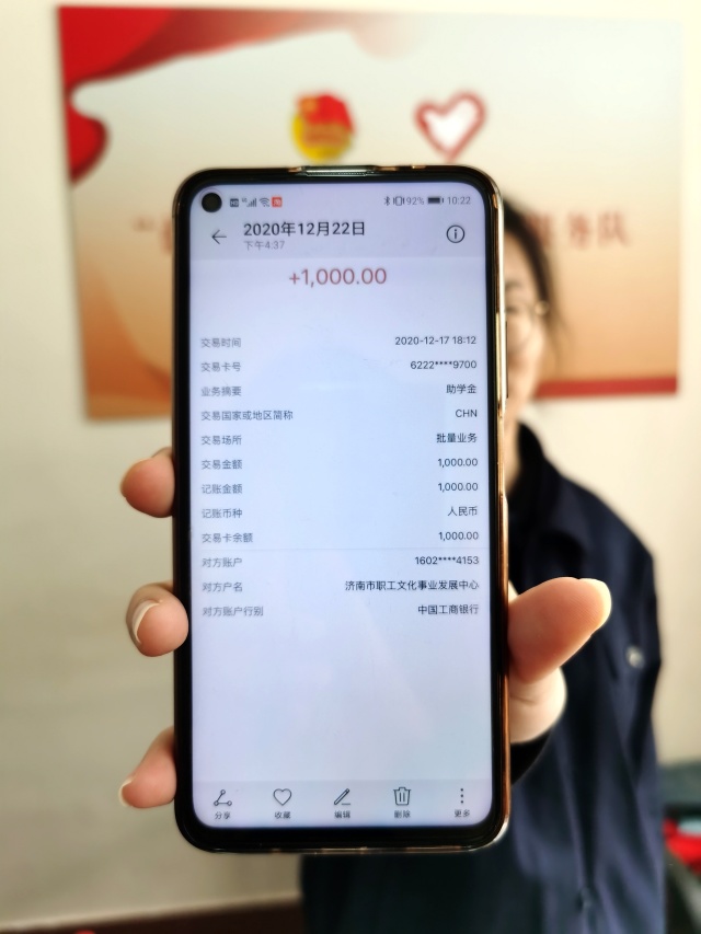 为努力提升职工学历层次,济南市总工会开展“求学圆梦行动”,为3000名2020年新入读大专(含)及以上学历教育学习的济南市一线职工发放求学圆梦补助。自活动开始,工会积极响应宣传,公司共有34名职工申报成功,每位职工获得助学金1000元,于12月17日陆续发放到职工个人账户。
