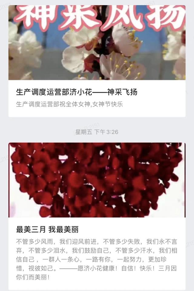 同时,山东济华燃气工会已在公司进行了“各美其美,共筑芳华”创意视频展示活动,结合建党100周年、“不忘初心、牢记使命”主题教育、公司服务理念、品牌建设等,通过视频拍摄展现岗位风采、个人才艺,活动一经展开,各分会女职工积极响应,展现新时代女职工在不同岗位中勇建新功,奉献勤奋、智慧和汗水。