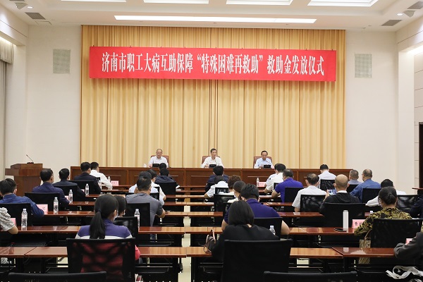 9月22日上午,济南市职工大病互助保障“特殊困难再救助”救助金发放仪式在龙奥大厦举行。市委常委、市总工会主席刘科出席发放仪式,并为受助职工代表发放职工大病互助保障救助金。市总工会常务副主席吕灿华主持活动。