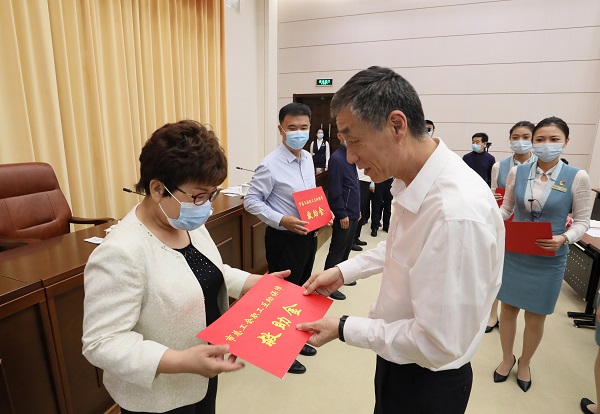 市总工会领导班子成员,受助职工代表及所属区县总工会、系统工会主要负责人参加发放仪式。