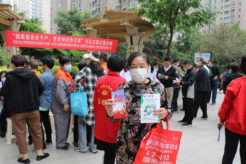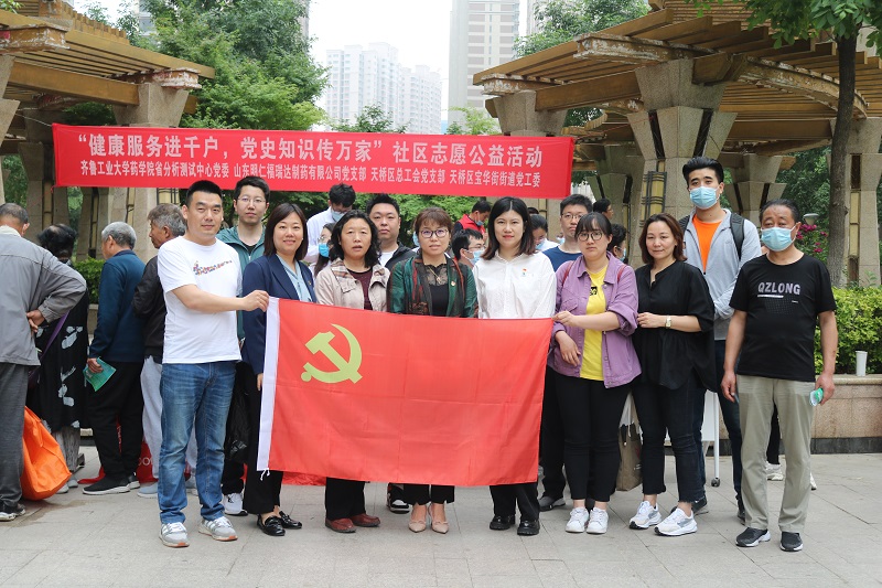 自党史学习教育开展以来,天桥区总工会自觉把开展党史学习教育作为重大政治任务,高标准高质量谋划推进各项工作。5月14日下午,区总工会、齐鲁工业大学药学院省分析测试中心、宝华街街道办事处、山东明仁福瑞达制药有限公司共同走进名泉春晓社区,开展“健康服务进千户,党史知识传万家”社区志愿公益活动,切实将党史学习教育成果转化为行动自觉,以为民办实事为落脚点,用实际行动践行不忘初心牢记使命。