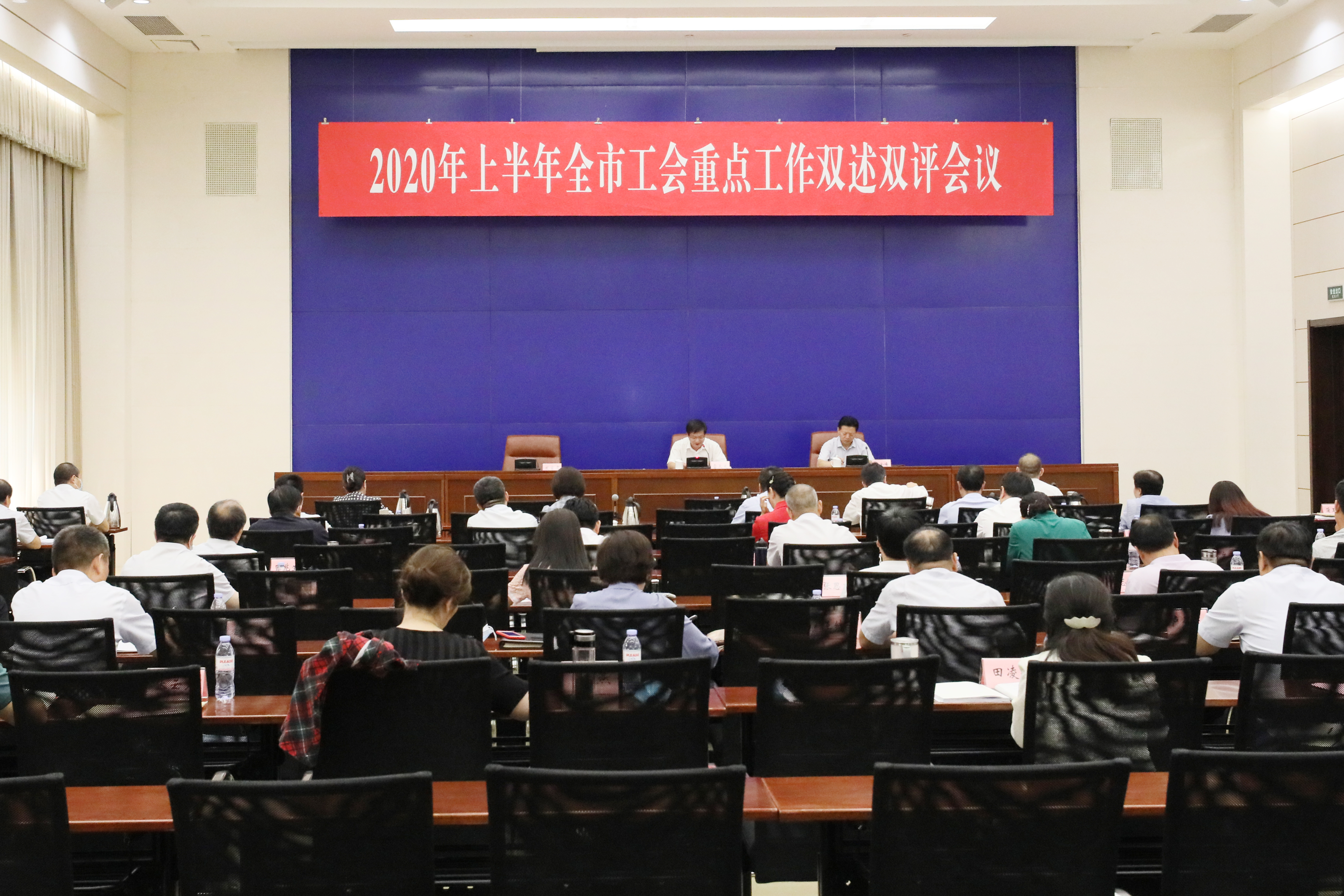 7月30日, 2020年上半年全市工会重点工作双述双评活动在龙奥大厦召开。市委常委,市总工会主席雷天太出席会议并讲话。市总工会常务副主席傅金峰主持会议。