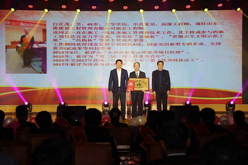 晚会共分为两个篇章,从恢弘的开篇到地方特色黄梅戏,从时光穿梭的情景剧到充满温馨和正能量的小品,从声势震撼的军体拳表演到如梦如幻的乐器演奏……舞台上,演员们用饱满热情的表演通过闪耀的灯光呈现一个又一个精彩片断;舞台下,观众们一次又一次报以热烈的掌声。舞台上下欢腾一片、热闹非凡,洋溢着浓厚的节日气氛。另外,为表彰先进,树立典范,晚会现场还举行了2019年度“学习强国”学习标兵、先进集体、劳动模范及先进个人颁奖典礼,颁奖现场,济南市总工会常务副主席、党组副书记傅金峰为集团公司员工白正茂进行了“白正茂劳模工作室”授牌仪式,进一步体现了市总工会领导对企业一线员工的关切之情。同时也为新的一年进一步实现“迎接新时代、打造新三箭,建诚信企业、数百年品牌”的企业愿景鼓舞了干劲。