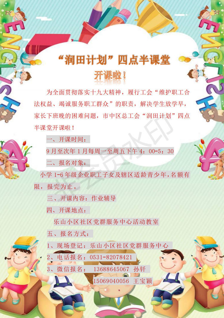 学生下午放学早,但家长下班比较晚,在这个时间差形成的“监管真空”时段内,“孩子去哪儿”成了许多家庭尤其是“双职工”父母的心病。为了解决这一难题,继寒暑假托管班后,市中区总工会从竭诚服务职工、为职工排忧解难出发,在充分调研的基础上,指导在乐山小区社区联合工会在社区开办了“润田计划”职工子女四点半课堂,有效缓解职工子女放学后的照看难题,切实提升职工群众的获得感和幸福感。