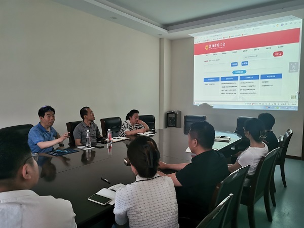 6月21日下午,济南市职工服务中心、市总工会综合事务服务中心开展业务交流共建活动,就济南市总工会官网部分功能板块内容优化、视觉呈现升级等相关事宜进行集中研讨。