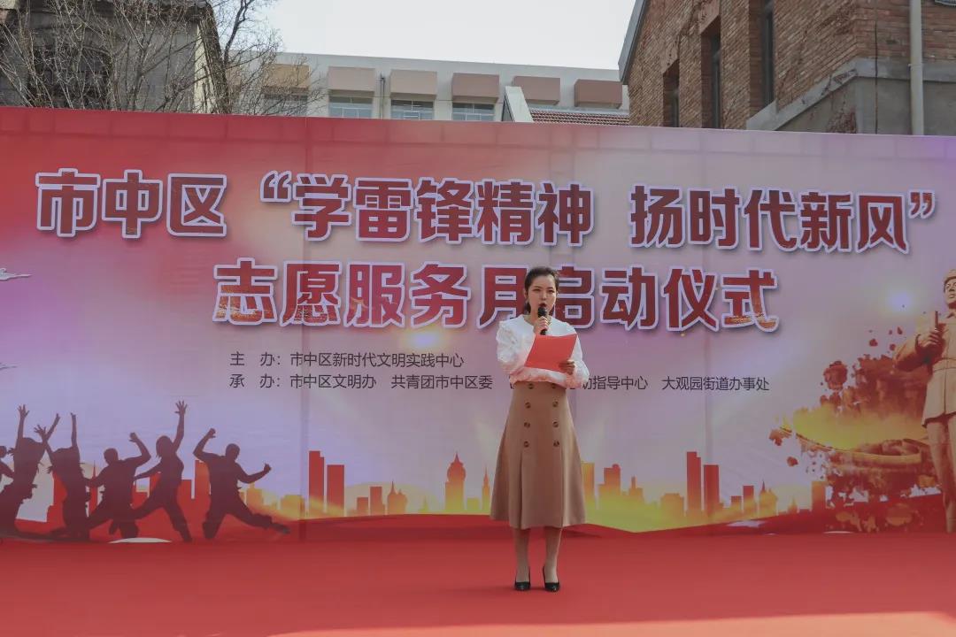 3月4日上午,由市中区新时代文明实践中心主办的市中区“学雷锋精神 扬时代新风”志愿服务月活动在融汇老商埠文化广场正式启动。市中区总工会新时代文明实践送温暖志愿服务队积极参加本次启动仪式。