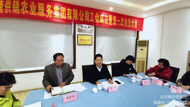 11月24日,济南供销农业服务集团工会成立大会胜利召开。济南市供销合作社党组成员、监事会副主任亓明同志、济南市供销合作社工会主任王红岩同志出席了会议。会议由集团党支部书记、总经理鞠常吉同志主持。