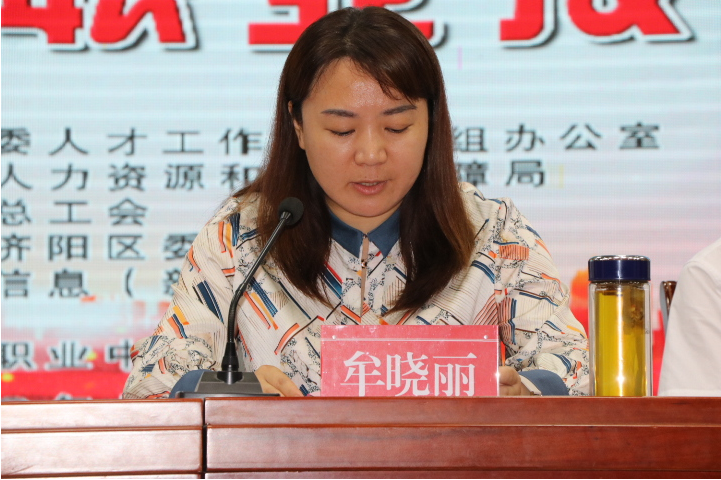 牟晓丽在致辞中指出,职业技能人才是我区人才队伍的重要组成部分,是各行业、各领域人才的优秀代表,是推动我区高质量发展的生力军。本届济阳工匠评选暨“才聚济阳”职业技能大赛,是我区开展职业技术竞技、加强广大职工素质能力建设的一件大事,也是我区职业技能培训计划实施成果的一次集中检阅,对于激励引导全区广大技术人才学练技能、奋发成才,构建高、中、初级技能人才梯次发展的职业技能人才高地,促进济阳经济社会持续发展,具有十分重要的意义。