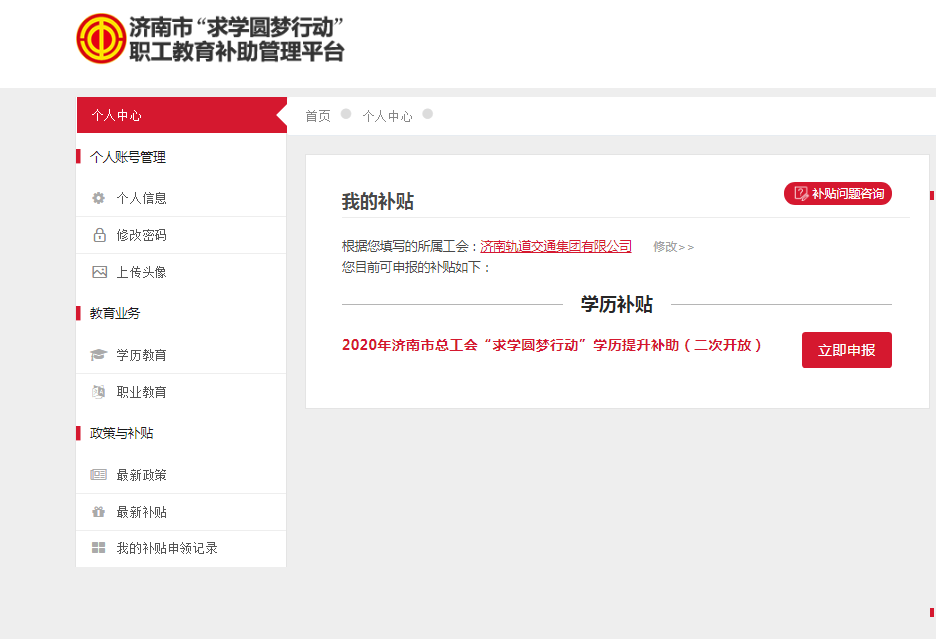 济南市职工申领2020年济南市总工会“求学圆梦行动”学历提升补助操作指南 (二次开放)