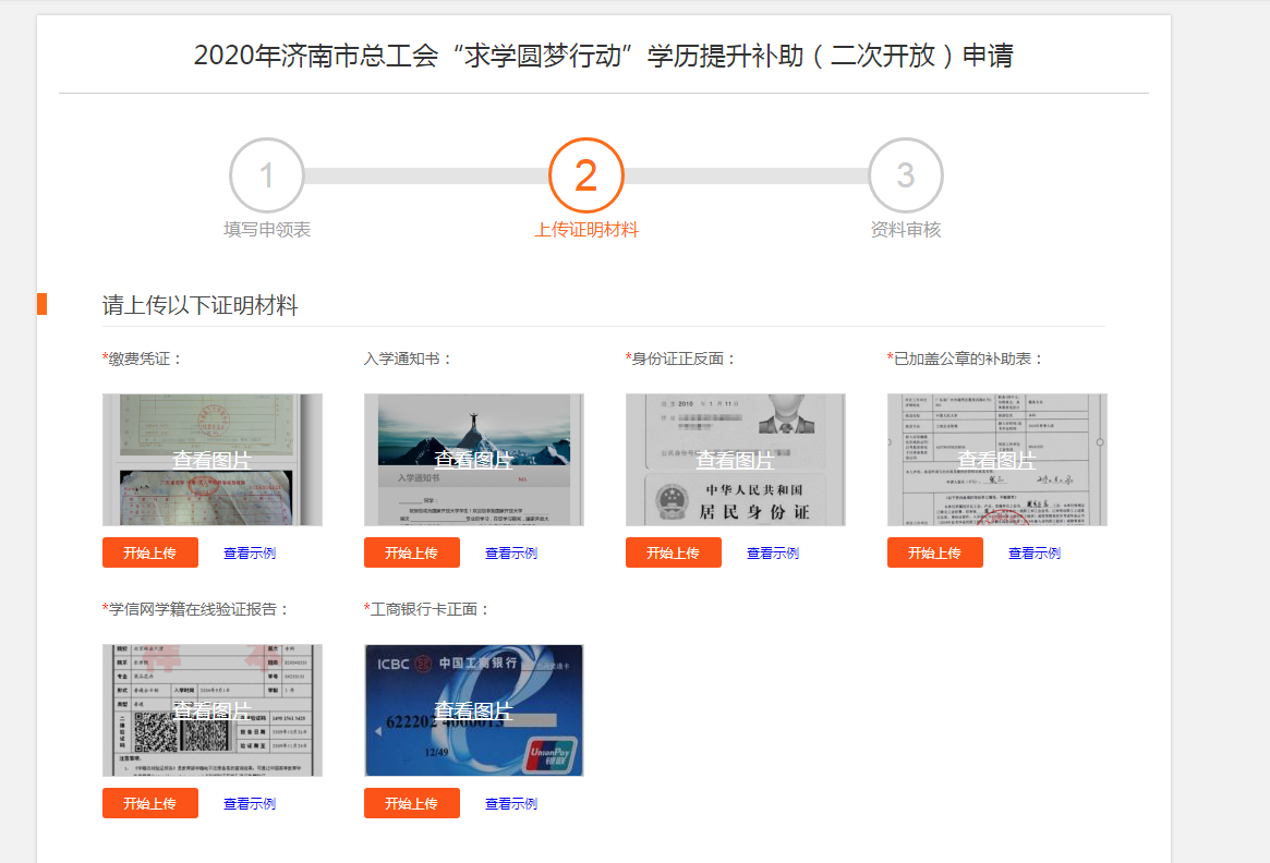 第六步:上传资料。完成单位审核后,职工再登录职工教育补助管理平台上传资料。