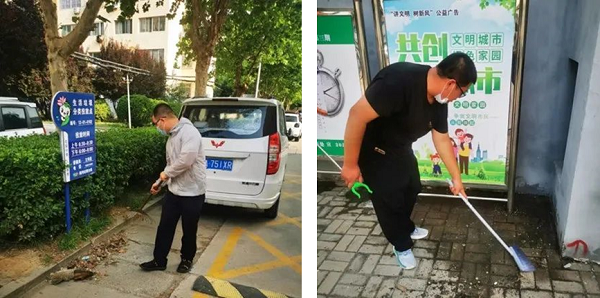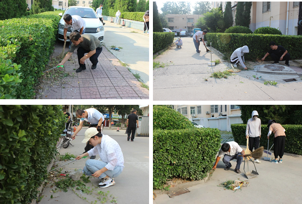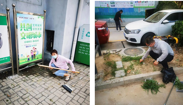 头顶烈日、挥汗如雨。全体人员手拿簸箕、长镊子,对小区绿化带中的塑料袋、烟头、废纸、干树枝等垃圾进行彻底清理。互不落后、分工明确,拔除杂草、清运垃圾。同时向小区居民宣传创城的重要性、紧迫性,引导居民树立“美好家园、人人创建”的良好理念,号召大家共建文明小区。