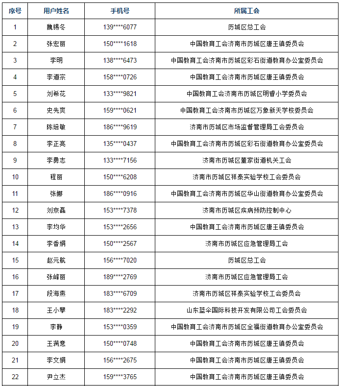【历城】庆“五一”国际劳动节历城区总工会工会知识有奖问答活动 中奖名单