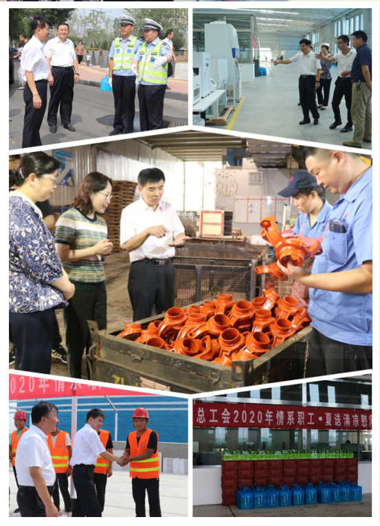 张吉忠一行先后到安城欧莱博建设项目工地、会仙山社区、交警值勤岗、环卫工作岗、新一中建设工地、玫德集团高温生产车间走访慰问一线工作人员,向他们赠送防暑降温慰问品,并察看了项目建设进展、施工安全、高温值守、高温生产措施等情况,对他们不畏酷暑、坚守岗位的精神表示赞扬,叮嘱他们在坚守岗位的同时注意防暑和安全,以更好的状态投入到工作中。同时嘱托各单位、企业负责人要保障好一线职工的安全健康,做好防暑降温工作,科学安排作息时间,尽最大努力营造平安舒适的工作环境,切实维护职工们的合法权益,确保大家平安度夏。