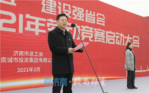 3月19日,济南市总工会联合济南城投集团在济钢中央森林公园举行“建功十四五·建设强省会”济南城投集团2021年劳动竞赛启动仪式。市总工会常务副主席傅金峰出席启动仪式并宣布劳动竞赛启动,市总工会副主席于虹、济南城投集团总经理武伟出席活动。