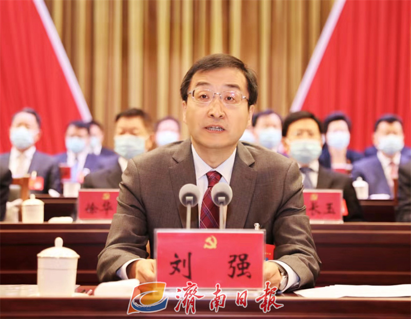 刘强在闭幕式上讲话。他指出,这次大会,按照中央部署和省委要求,在全体代表的共同努力下,开得很成功、很圆满,是一次与时俱进、继往开来的大会,是一次民主和谐、团结胜利的大会,是一次凝心聚力、催人奋进的大会。这次大会从思想上、政治上、组织上,为济南牢记习近平总书记殷殷嘱托,勇当“三个走在前”排头兵,奋力开创新时代社会主义现代化强省会建设新局面,奠定了坚实基础,提供了坚强保证,具有重大而深远的意义。大会闭幕后,学习好、宣传好、贯彻好市第十二次党代会精神,是全市上下当前和今后一个时期的一项重要政治任务。全市各级党组织要切实加强组织领导,引导广大党员干部充分认识这次党代会的重大意义,认真学习党代会报告,准确领会党代会精神,结合各自实际,抓紧研究制定贯彻落实党代会精神的具体措施,确保党代会确定的重大决策部署和各项目标任务落到实处、见到成效。各位代表来自各行各业、各条战线,要充分发挥联系群众、贴近基层的优势,带头学习宣传党代会精神,带头在本职工作中贯彻落实党代会任务部署,带头为省会高质量发展贡献智慧和力量。让我们更加紧密地团结在以习近平同志为核心的党中央周围,高举习近平新时代中国特色社会主义思想伟大旗帜,不忘初心、接续奋斗,只争朝夕、锐意进取,当好“三个走在前”排头兵,奋力开创新时代社会主义现代化强省会建设新局面,以优异成绩迎接党的二十大胜利召开。