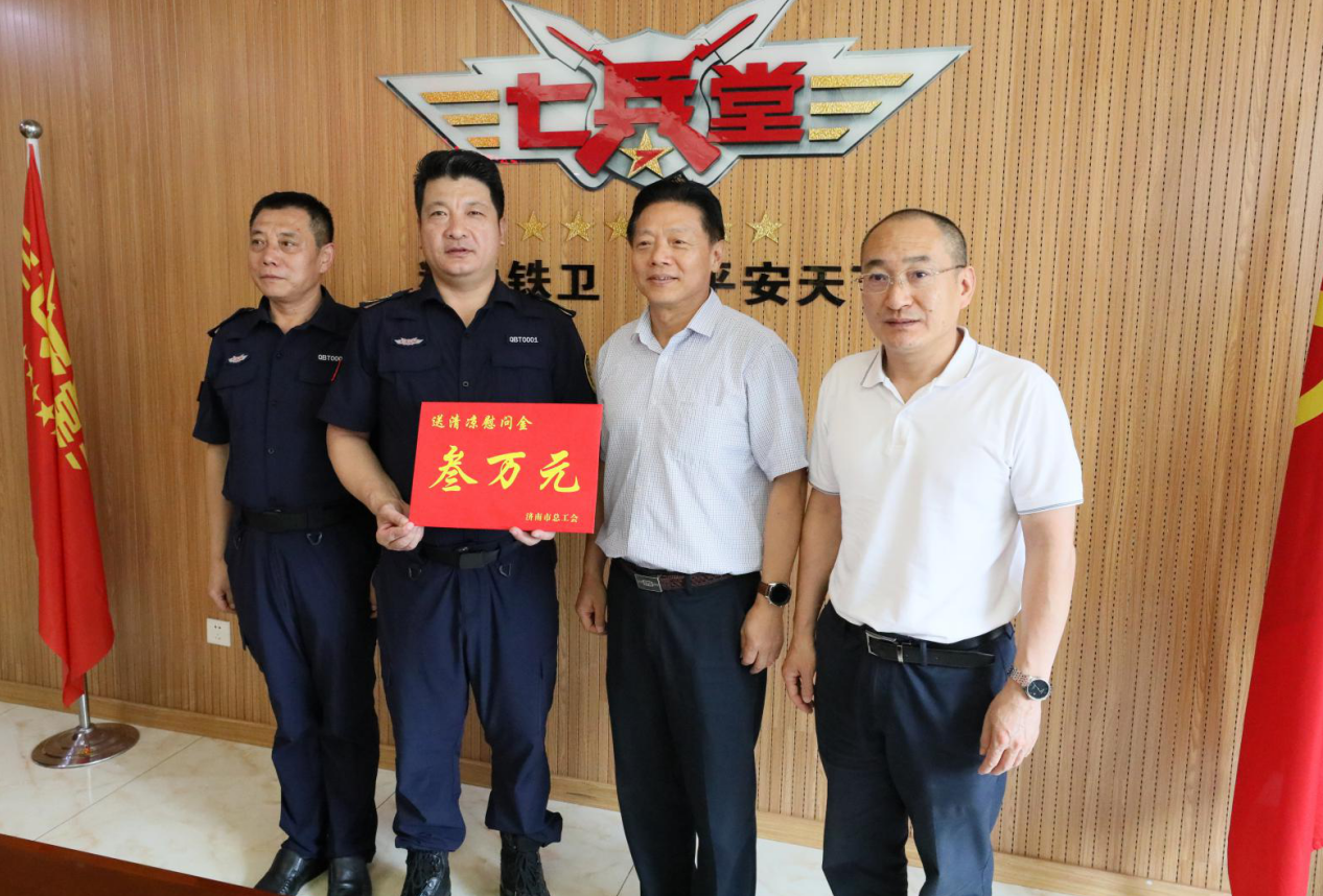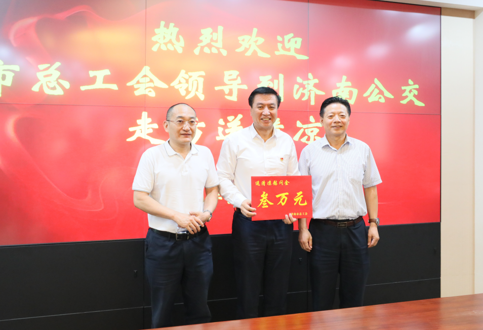 7月29日上午,市总工会常务副主席傅金峰带队到济南公交公司、山东振邦保安服务有限责任公司、七兵堂国际安保公司开展“夏送清凉”活动,并调研工会工作。