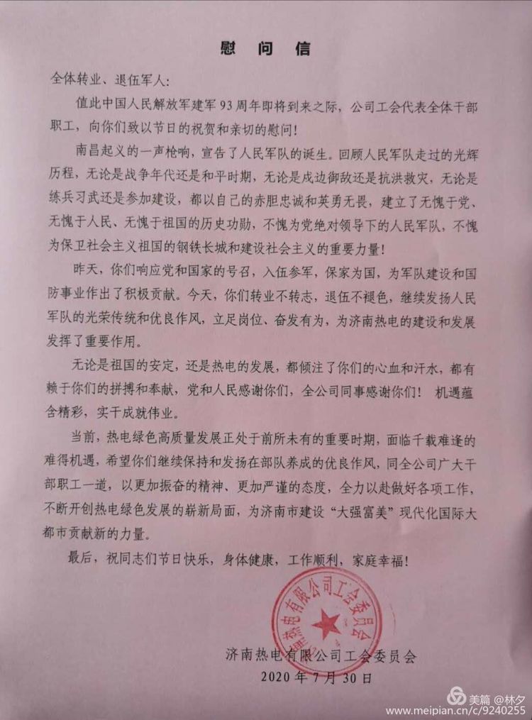 爱军拥军是济南热电有限公司一贯的传统,作为供暖企业,愿为部队官兵——新时代最可爱的人提供更加周到、细致的供热服务!