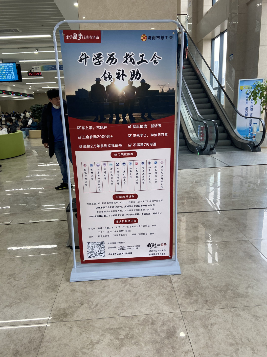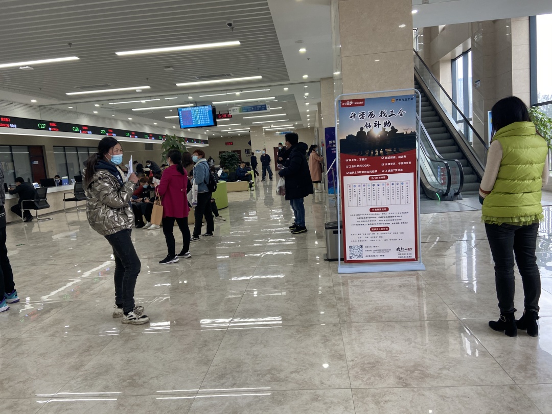 历城区总工会 “求学圆梦行动”宣传海报走进历城区便民服务中心大厅。