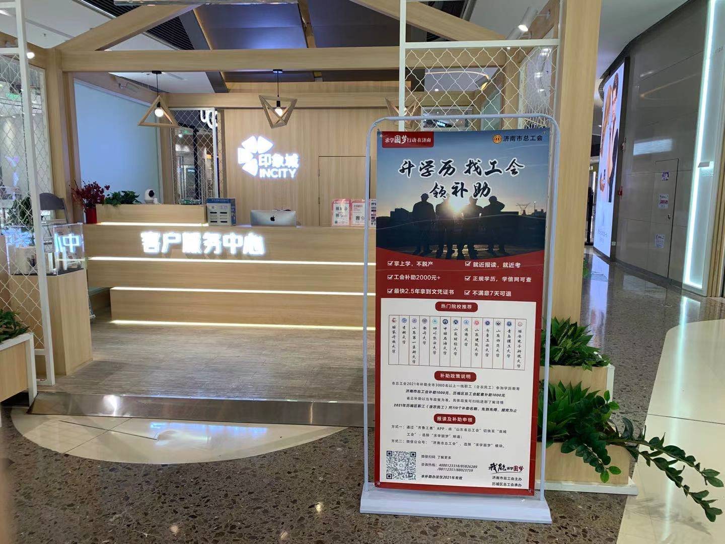历城区总工会“求学圆梦行动”宣传海报走进历城区各大商圈。
