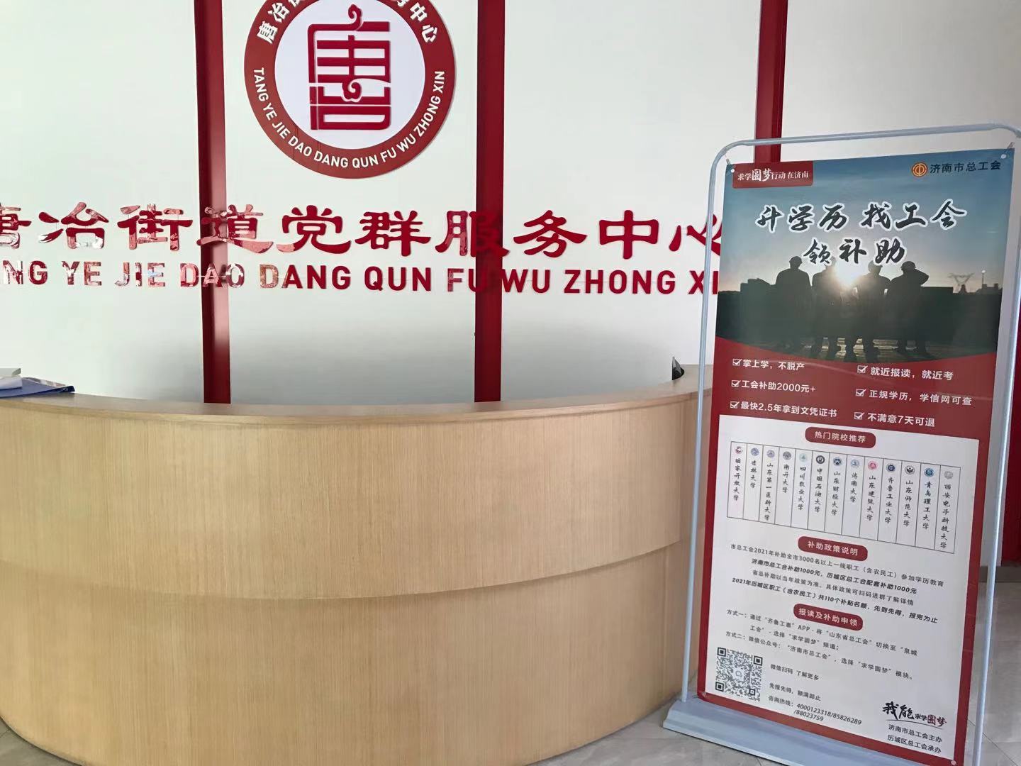 历城区总工会“求学圆梦行动”宣传海报走进历城区各街道、社区党群服务中心和便民服务大厅。