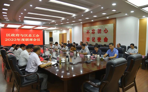8月4日上午,长清区人民政府与区总工会2022年度联席会议在区委三楼中厅召开。区委副书记、区总工会主席王友进,区政府副区长陈楠出席会议并讲话。