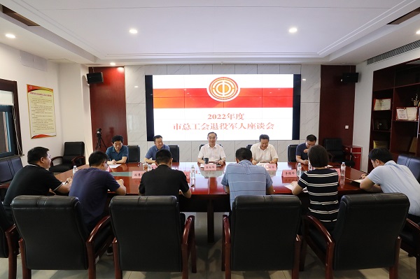 在中国人民解放军建军95周年即将到来之际,7月29日下午,市总工会召开退役军人座谈会,深入学习贯彻习近平总书记关于退役军人工作的重要论述,听取机关退役军人代表的意见建议。市总工会退役军人代表齐聚一堂,共忆从军岁月,畅谈工作感悟和体会。市总工会党组副书记、常务副主席吕灿华代表市总党组向机关全体退役军人表示节日的祝贺和美好的祝愿。