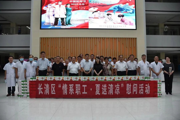 活动中,区领导为医务人员送上鲜花和蜜桃、茶、牛奶等慰问物资,并向奋战在抗疫、临床等多条战线上的医务工作者致以节日的问候和诚挚的祝福。叮嘱他们认真工作的同时要注意防暑降温,保证自身的安全与健康。希望他们在今后的工作中能始终秉承医者初心,躬身践行“敬佑生命、救死扶伤、甘于奉献、大爱无疆”的职业精神,全心全意为人民的健康服务,为构建健康长清贡献力量。