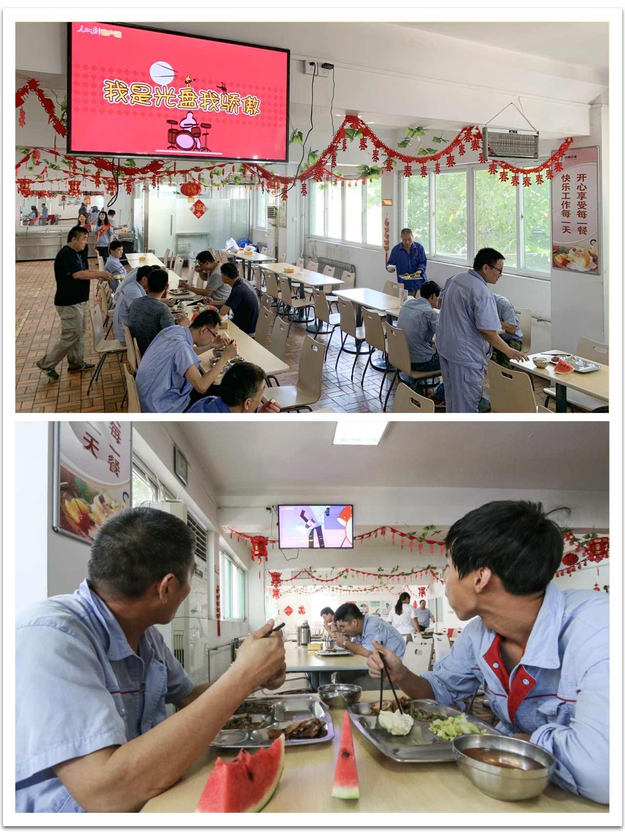 “一粒米,千滴汗,粒粒粮食汗珠换”。活动以多种形式向全体职工宣传“光盘行动”。食堂里,餐桌上摆放着倡导文明就餐、鼓励光盘行动的标语;执勤志愿者提醒就餐职工盛取饭菜时“少量多次,适量取餐”,养成节约好习惯;播放的 “厉行节约、反对浪费”宣传视频引得职工纷纷观看;现场还开展“光盘达人”比拼活动,为达人们赠送小礼品留念,号召全体职工“践行光盘,拒绝盛宴”从现在做起,从点滴小事做起,培养自己良好的生活习惯,节约粮食,为打造“五个济南”贡献能源力量。