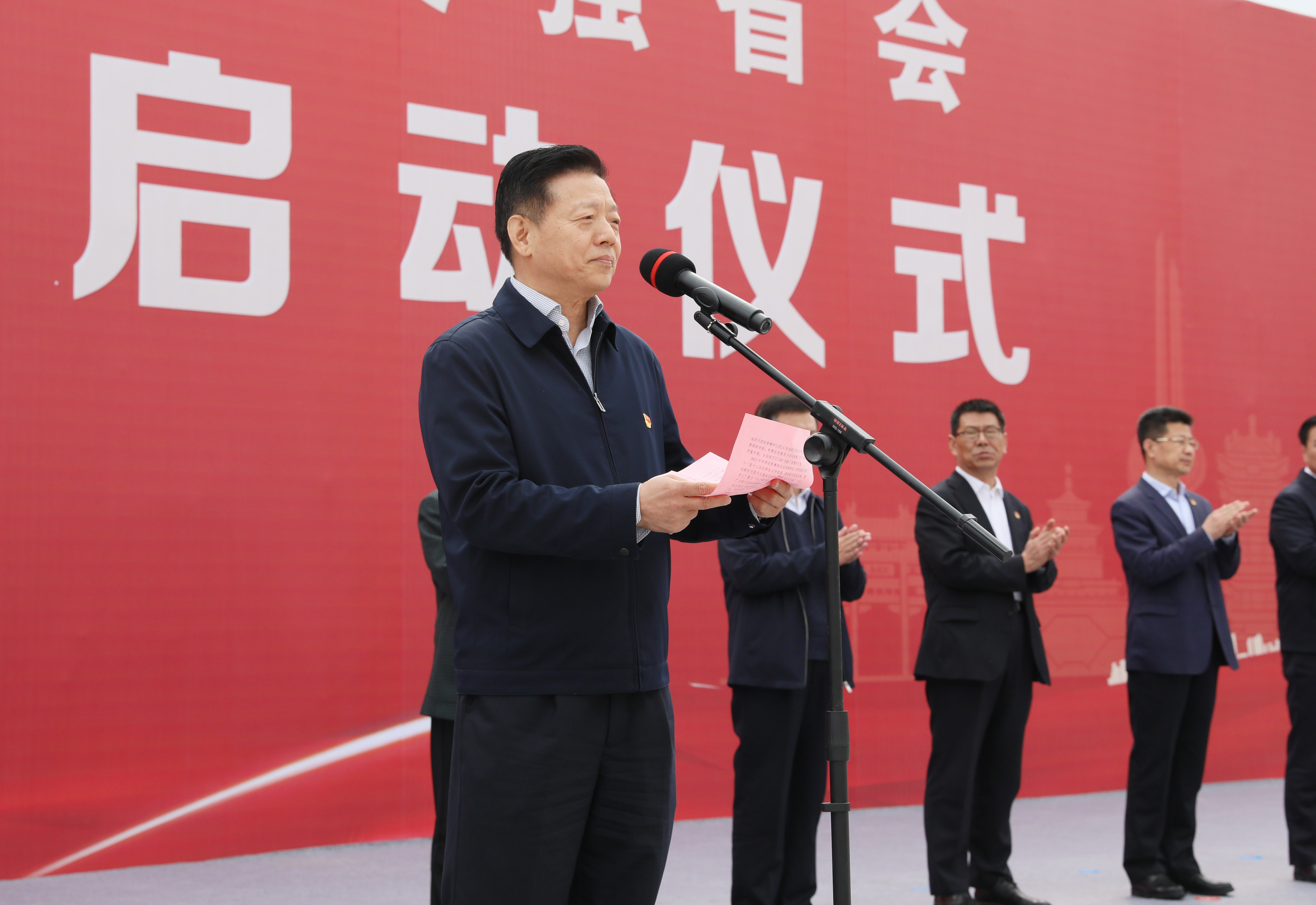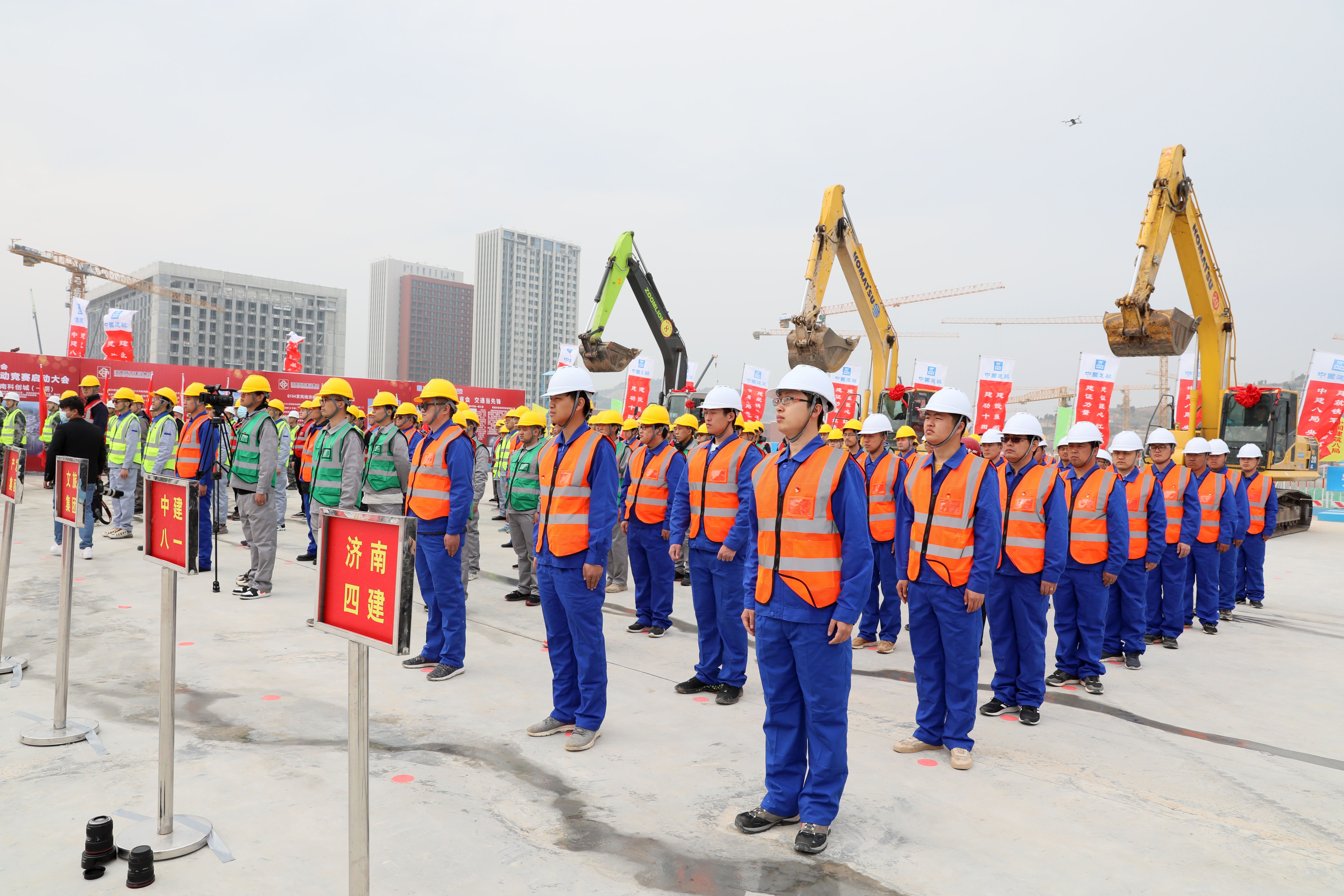 3月26日,济南市劳动竞赛委员会在中科院济南科创城项目建设工地项目现场举办“建功‘十四五’·建设强省会”全市争先创优劳动竞赛誓师大会。市委常委、市总工会党组书记王京文出席并宣布劳动竞赛启动。