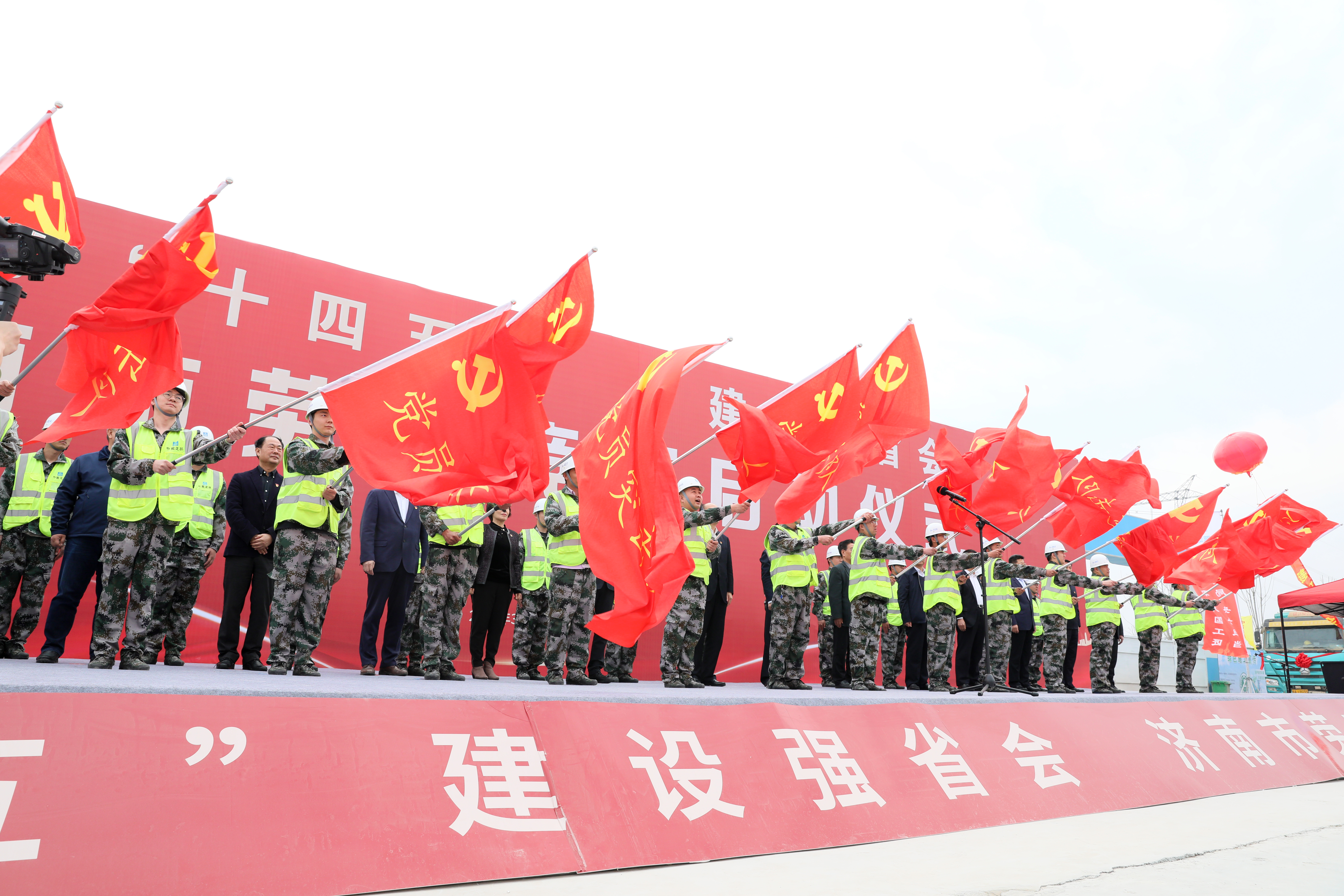 活动现场,建设单位负责人作表态发言,与会领导向“党员突击队”授旗,“党员突击队”队员豪迈宣誓“建功‘十四五’、逐梦新时代;建设强省会、当好主人翁;打好攻坚战、党员当先锋;匠心出精品、建功在泉城。”