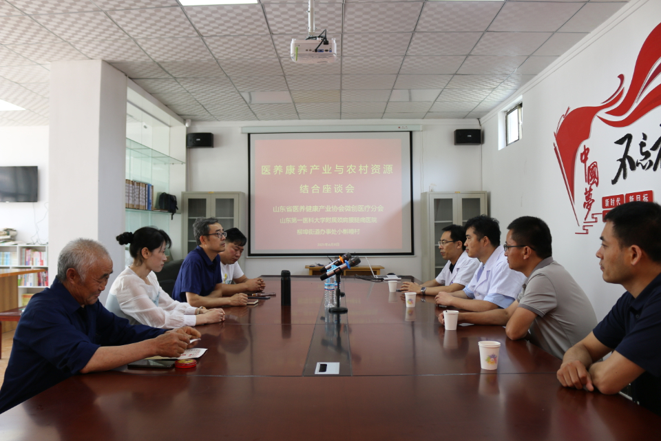 义诊结束后,山东省医养健康产业协会微创医疗分会、山东第一医科大学附属颈肩腰腿痛医院义诊专家和柳埠街道小槲疃村委进行了医养康养产业与农村资源结合座谈会。