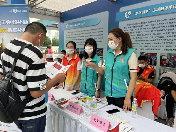 济南市总工会认真贯彻党中央、国务院关于新时期产业工人队伍建设改革的要求,依托济南市职工文化事业发展中心成立“求学圆梦”志愿服务队,开展“送教育到基层”,常年活跃在生产建设一线,帮助一线职工(含农民工)提升学历教育与技能素质。深入企业、职工餐厅、商圈等与职工面对面宣传,累计举办宣讲活动249场,行程1.4万公里,覆盖企事业单位4000多家。“求学圆梦行动”2021、2022连续两年被列为济南市政府为民办实事之一。省委、省政府领导多次批示肯定,并在全省推广。两年来共为全市8968名一线职工发放求学补助超过1500万元,减轻了职工的经济负担,帮助职工圆了大学梦,为我市建设知识型、技能型、创新型高素质产业工人队伍贡献力量。
