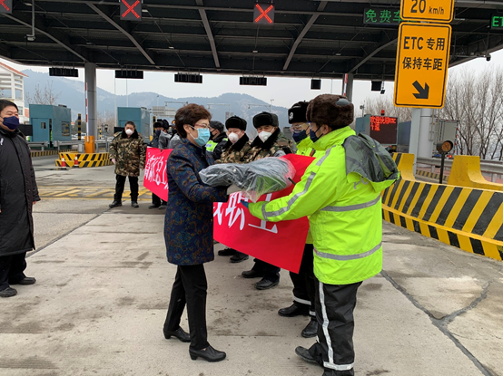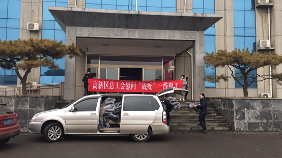 2月6日下午,春雪稍霁,寒意正浓。一辆载着御寒物资的车自高新管委会出发,驶向蟠龙、遥墙高速口,为“战疫”一线的职工送去温暖。 自新型冠状病毒感染的肺炎疫情发生后,防控一线职工的状况时刻牵动着“娘家人”的心,在走访过程中,区总工会了解到一线职工御寒物资不足,得知这一消息后,高新总工会立即行动,第一时间与服装厂家联络购置御寒衣物并送往疫情防控一线。 下午2时许,济南高新区党工委副书记,管委会常务副主任寇梅同志带领总工会同志到达蟠龙高速路口检查站对奋战疫情防控一线的工作人员进行慰问,并对检查站疫情联防联控工作进行指导。