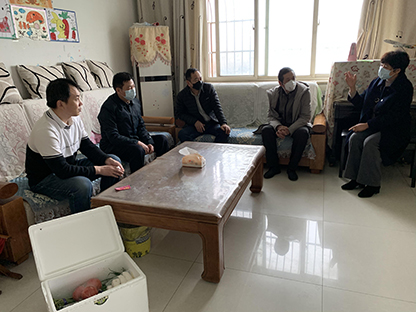 王洪亮一行先后看望了援湖北医护人员孙立群、张红亭、李风云、王凯4名驰援湖北医护人员的家属,并表示区总工会每周都会为他们配送新鲜蔬菜。