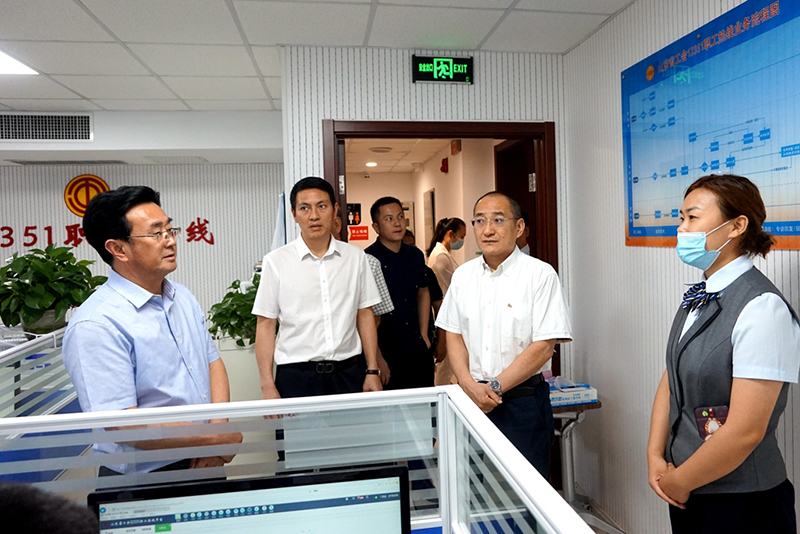 胡凤海一行参观了服务中心八大服务平台,了解服务窗口和功能室设置以及市职工互助互济会工作开展情况,双方交流了在开展职工普惠服务、打造网上服务平台等方面的经验和做法;考察团组还参观了市委红色教育基地济南市工运史馆、省总12351热线,还参观了户外劳动者爱心驿站、职工心理健康中心。