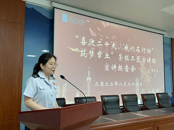8月26日下午,“筑梦章丘”劳模工匠宣讲团到光大水务(济南章丘)有限公司进行宣讲,拉开了章丘区“喜迎二十大,奋进新征程”劳模工匠宣讲活动的序幕,区总工会党组副书记、副主席刘仁奎参加活动。