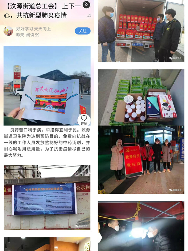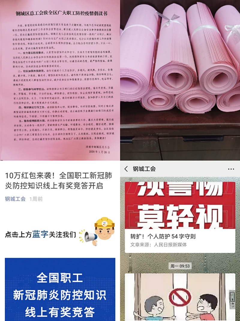 钢城区总工会要求各级工会组织积极行动起来,联防联控,群防群控,汇集起疫情防控强大力量,各基层工会组织也在陆续开展疫情防控系列工作。