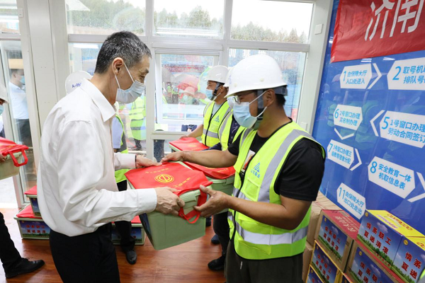 刘科一行先后到山东省公共卫生临床中心(济南市传染病医院二期)项目、济南城市轨道交通4号线一期工程奥体中心东站,现场察看项目建设情况,把防暑降温物品送到职工手中,仔细询问他们的工作生活情况,叮嘱他们注意防暑降温和自身防护,持续做好疫情防控和安全生产工作,激励他们立足岗位、建功立业。他要求各级工会、各单位要坚持以职工为中心,充分认识做好职工防暑降温工作的重要性,切实发挥服务保障作用,努力改善劳动条件和作业环境,进一步增强职工的获得感、幸福感、安全感,帮助广大职工平安度夏。