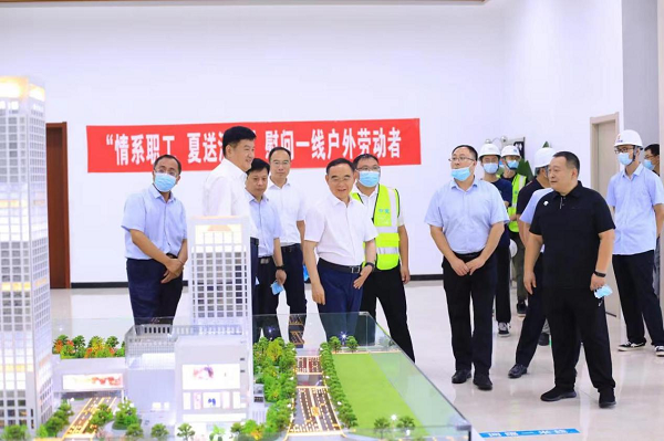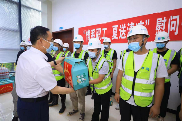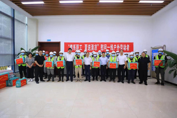 吕灿华一行到历下区CBD中央广场项目工地,看望慰问项目参建职工,为他们送上防暑降温物品。吕灿华强调,开展“夏送清凉”活动,是工会竭诚服务职工,特别是奋战在高温一线户外劳动者的职责所在。他向参建职工表达了亲切的问候,对他们不畏高温、勤勤恳恳的工作表示感谢,并叮嘱他们要增强自我保护意识,注意劳逸结合,确保高温季节的生产安全和身体健康,立足本职岗位,不断提升技能,以优异成绩迎接党的二十大胜利召开。