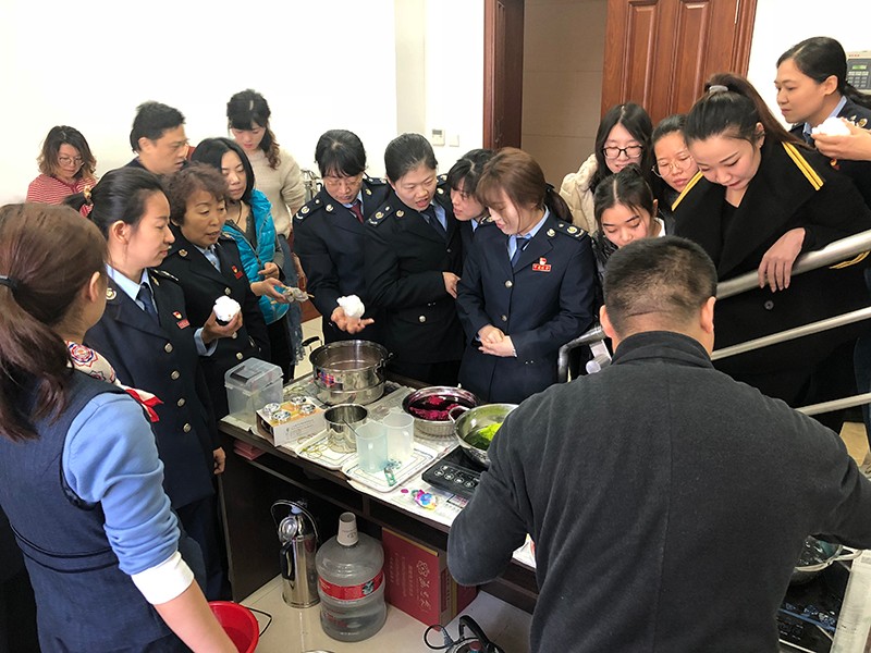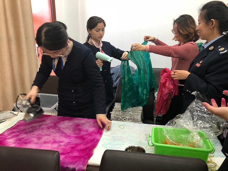 为了迎接三八妇女节,3月6日上午,在区税务局四楼会议室,区总工会开展魅力丝巾扎染活动,区总工会全体女职工、街道社会化工作者、局委专职工会主席(干部)、区税务局部分女职工,共计40余人参加,专家现场讲解指导,感受传统扎染魅力,弘扬民族文化。