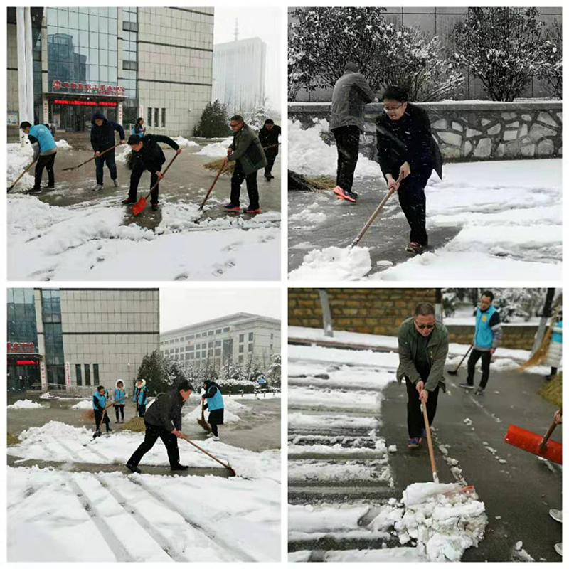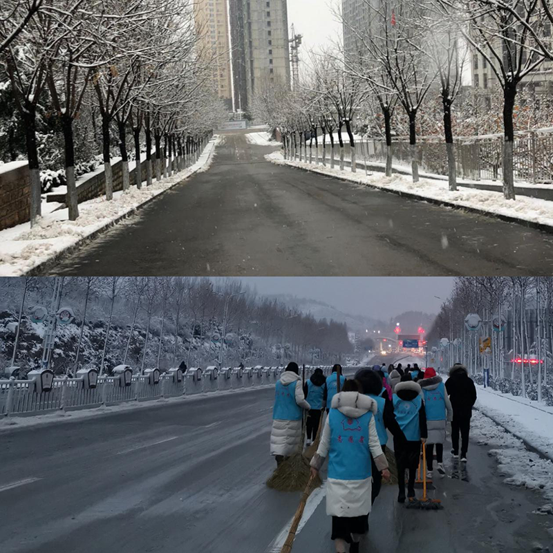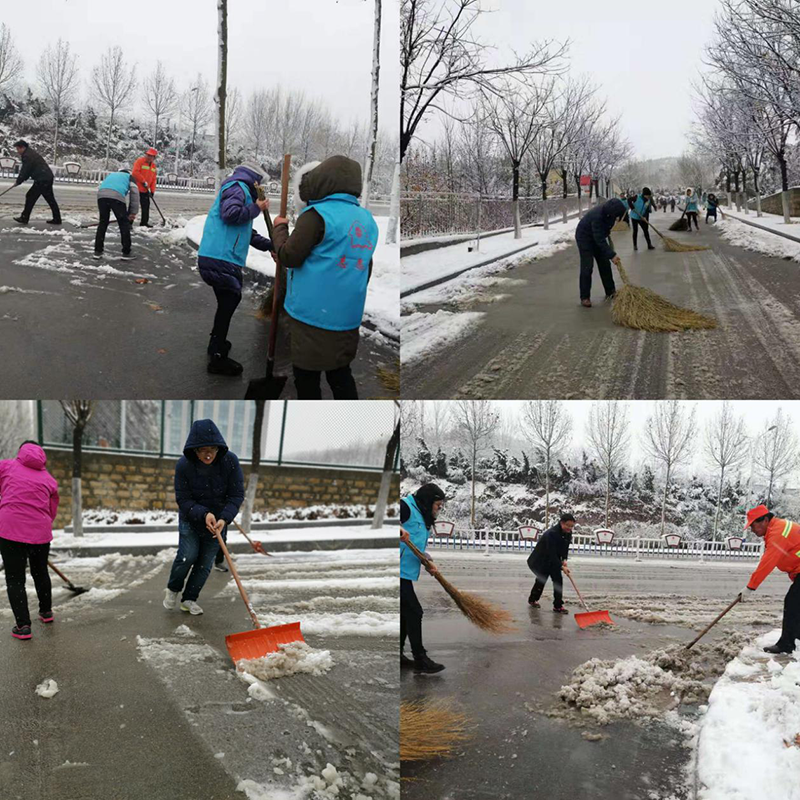 在寒冷的环境中,大家齐心协力配合默契,干劲十足,有的推,有的铲,有的扫,干的热火朝天。虽然室外温度很低,手和脸冻得通红,但这些小困难丝毫没有影响大家的热情和工作效率。经过两个多小时齐心协力的浴“雪”奋战,原本满地积雪、湿滑难行的道路变得干净畅通。一条清洁的道路给出行的人送去的不单单是方便与安全,更是传递一份温暖和正能量。
