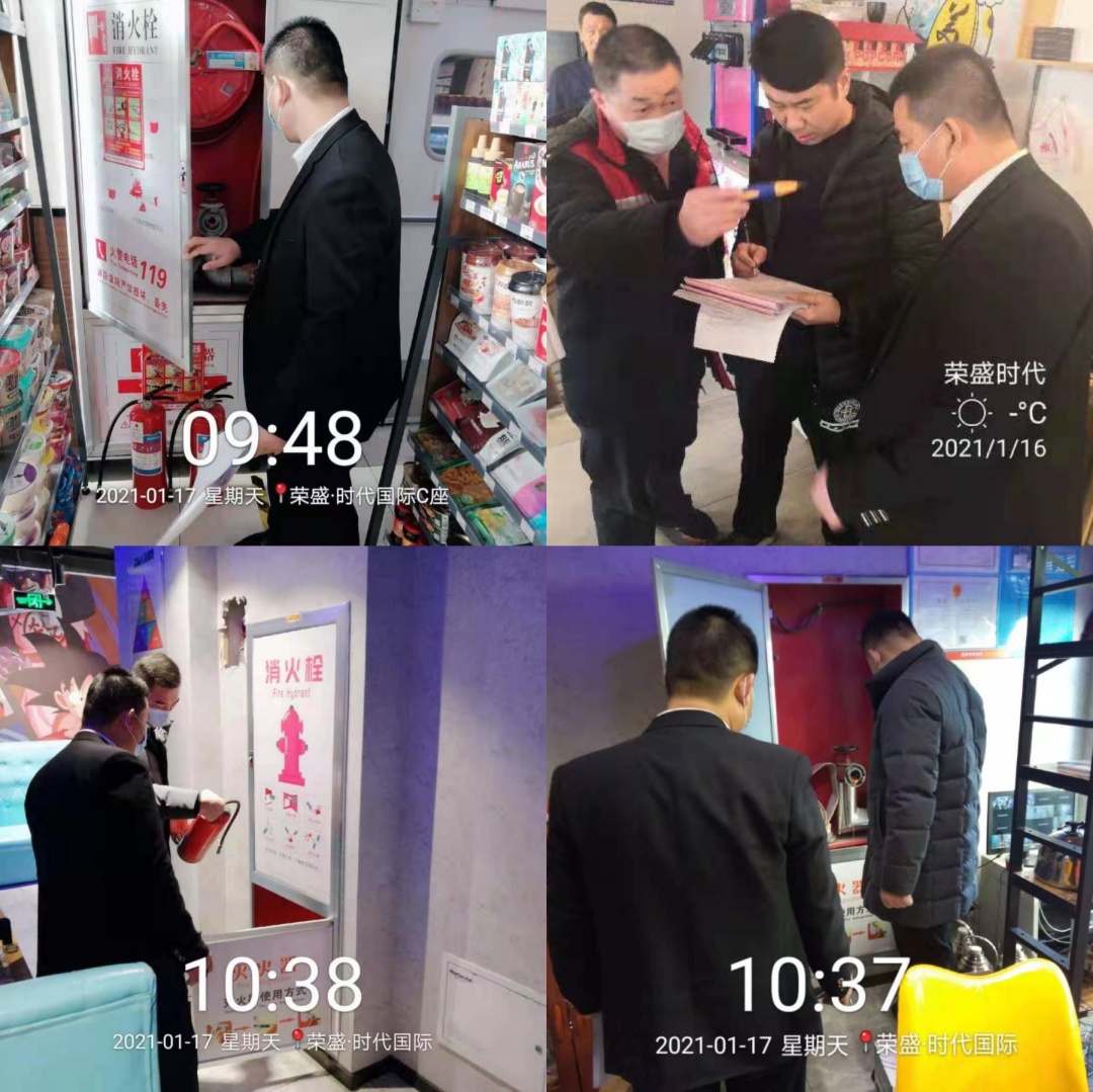 全福街道荣万家生活服务股份有限公司在荣盛时代广场内进行消防用具检查
