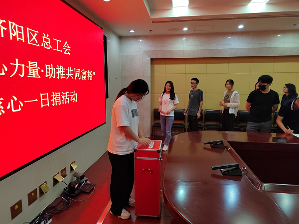 8月17日,区总工会全体职工在机关服务中心十一楼会议室举行了2022年“凝聚爱心力量·助推共同富裕”慈心一日捐活动。捐款现场,区总工会党组成员率先垂范,带头捐款,全体干部职工积极响应,踊跃参与,以实际行动表达了对慈善事业的支持。