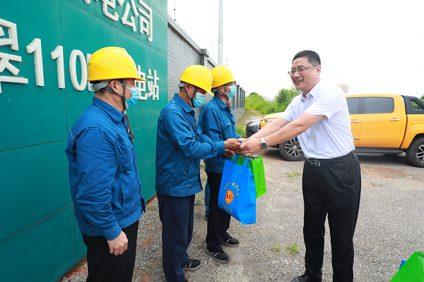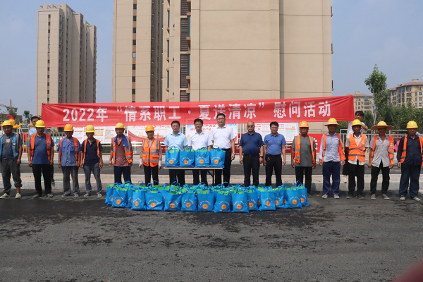 热在三伏,连日的高温为一线劳动者带来诸多“烤”验。近日,平阴县总工会党组书记、常务副主席张修伟,经费审查委员会主任汝凯先后到榆山深井泵棚改、五凤山市政道路建设、县民兵训练基地、博科智造产业园和中电建核电装备智造基地5个县重点项目和供电公司云翠变电所慰问一线职工,为冒着酷暑挥汗如雨,奋战在高温一线的劳动者送上茶叶、藜麦、洗衣粉、藿香正气水等慰问品,送去工会“娘家人”的清凉与关怀。